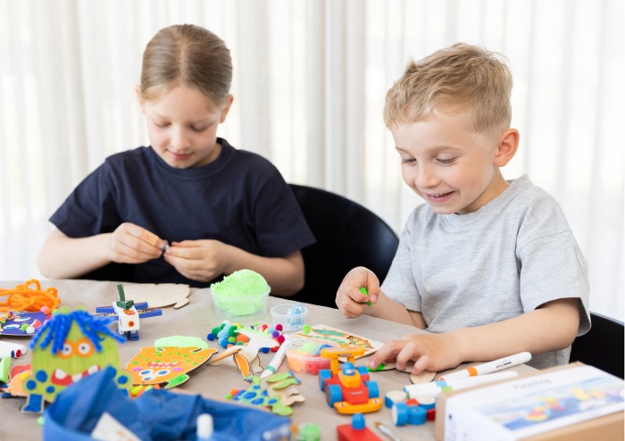 Les enfants peuvent décorer de nombreux supports, comme des chaussettes, des sacs en tissu, des trousses, des fanions, des rangements muraux ou des maniques. Les motifs peuvent être des formes simples, des motifs répétitifs ou laisser libre cours à l’imagination – tout est permis, et il n’y a ni bonne ni mauvaise façon de faire.
